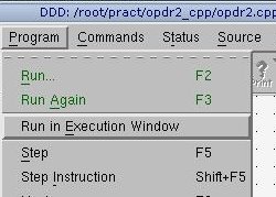DDD is geladen moeten we de command line parameters opgeven. Dit kan door