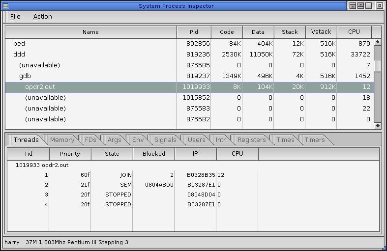 om de threads te bekijken. Deze tool laat ook de verschillende prioriteiten