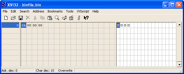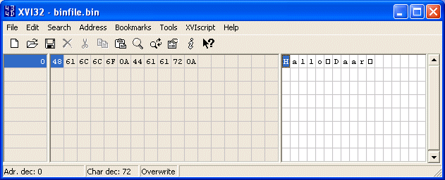 karakters. Het is nu duidelijk te zien dat de file bestaat uit 4 bytes. Er