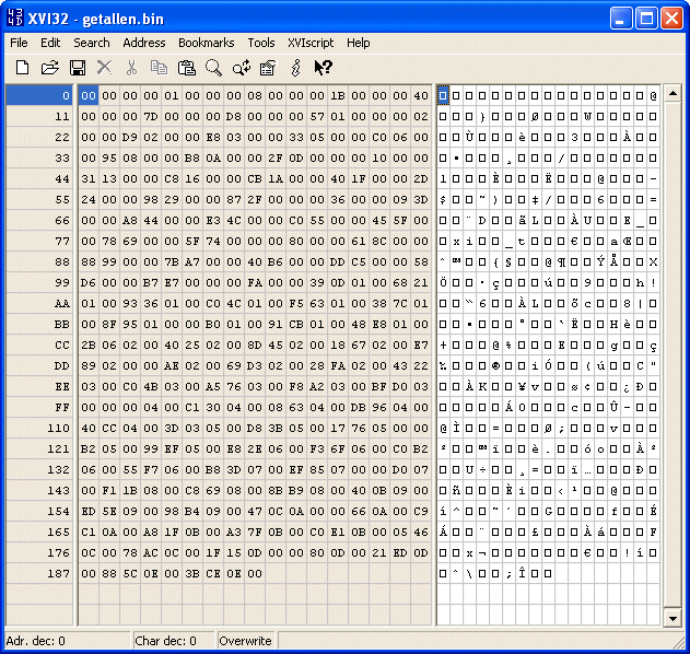 is dan 00 00 00 7B. Binaire files worden ook wel random access files genoemd.