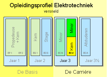 De Opleiding Elektrotechniek bestaat uit twee delen: het basisdeel en het carrièredeel. Het carrièredeel beslaat 4 semesters: ECS (stage), ECV (voorjaar), ECN (najaar) en ECA (afstuderen). In het carrièredeel willen we de studenten veel keuzemogelijkheden geven. Om deze reden zijn in dit deel van de opleiding 3 minoren van elk 15 creditpoints opgenomen: twee in semester ECN en één in semester ECV. Het semester ECV wordt alleen in het voorjaar aangeboden (vandaar de naam: Elektrotechniek Carrière Voorjaar). Als je deelneemt aan ECV dan heb je de basis van de E opleiding al gevolgd en heb je ook al stage gelopen. Als reguliere student volg je ECV na de stage maar als versnellende (of vertraagde) student volg je ECV na ECN.