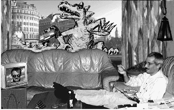 Stel dat je lekker alleen thuis naar een video film zit te kijken. Plots gaat de telefoon. Je loopt naar de videorecorder en drukt op de pauze toets. Vervolgens neem je de telefoon op. Het is een vriendin die vraagt of je volgende week donderdag mee gaat naar de film. Eens even denken, volgende week donderdag, had je dan al niet een afspraak? Even in mijn agenda kijken zeg je tegen je vriendin en je loopt de trap op naar je kamer om in je agenda te gaan kijken. Als je halverwege op de trap staat gaat de bel van de voordeur. Je komt weer van de trap af en doet eerst de deur open. Voor de deur staat een postbode met een pakje voor je vader. Je pakt dit pakje aan en doet de voordeur weer dicht. Nu snel naar boven om in je agenda te kijken. Als je halverwege op de trap bent hoor je plots gepiep uit de keuken. De magnetron geeft aan dat de diepvriesmaaltijd die je er had ingezet klaar is. Dat komt later wel, denk je en je loopt door naar boven. Er staat nog geen afspraak op volgende week donderdag avond. Meteen noteer je dat je dan naar de film gaat. Snel spring je de trap af om het goede nieuws aan je vriendin te vertellen. Na nog wat gebabbel komt er een einde aan het gesprek. Tot donderdag dan maar ... Ja ik ook! ... Doei! Je loopt naar de magnetron en haalt je eten eruit. Vervolgens druk je op de pauze toets van de video om de film verder te kunnen bekijken en met je bord op schoot zak je weer lekker onderuit op de bank. Zie figuur.