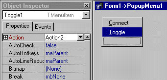 The next step is creating a new form on which our new component is created. To create a new form in Builder 5.0 choose File, New Form and in Builder 6.0 choose File, New, Form. In our example the only objects that are placed on the form are an image, an actionlist and a popup menu. The form should now look like this: